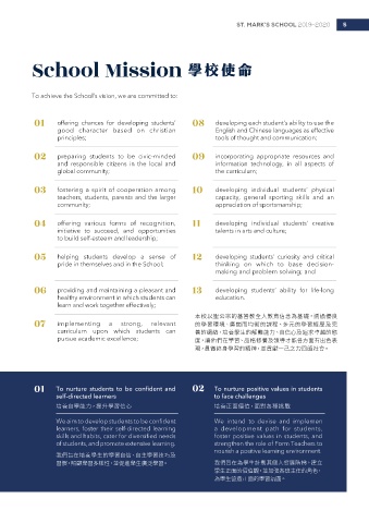 School Major Concerns St. Mark’s School places equal emphasis on our students’ diverse 01 To nurture students to be confident and 02 To nurture positive values in students