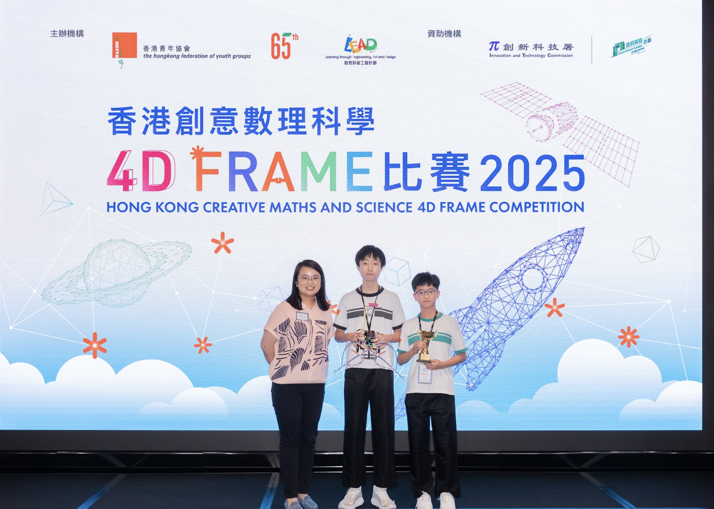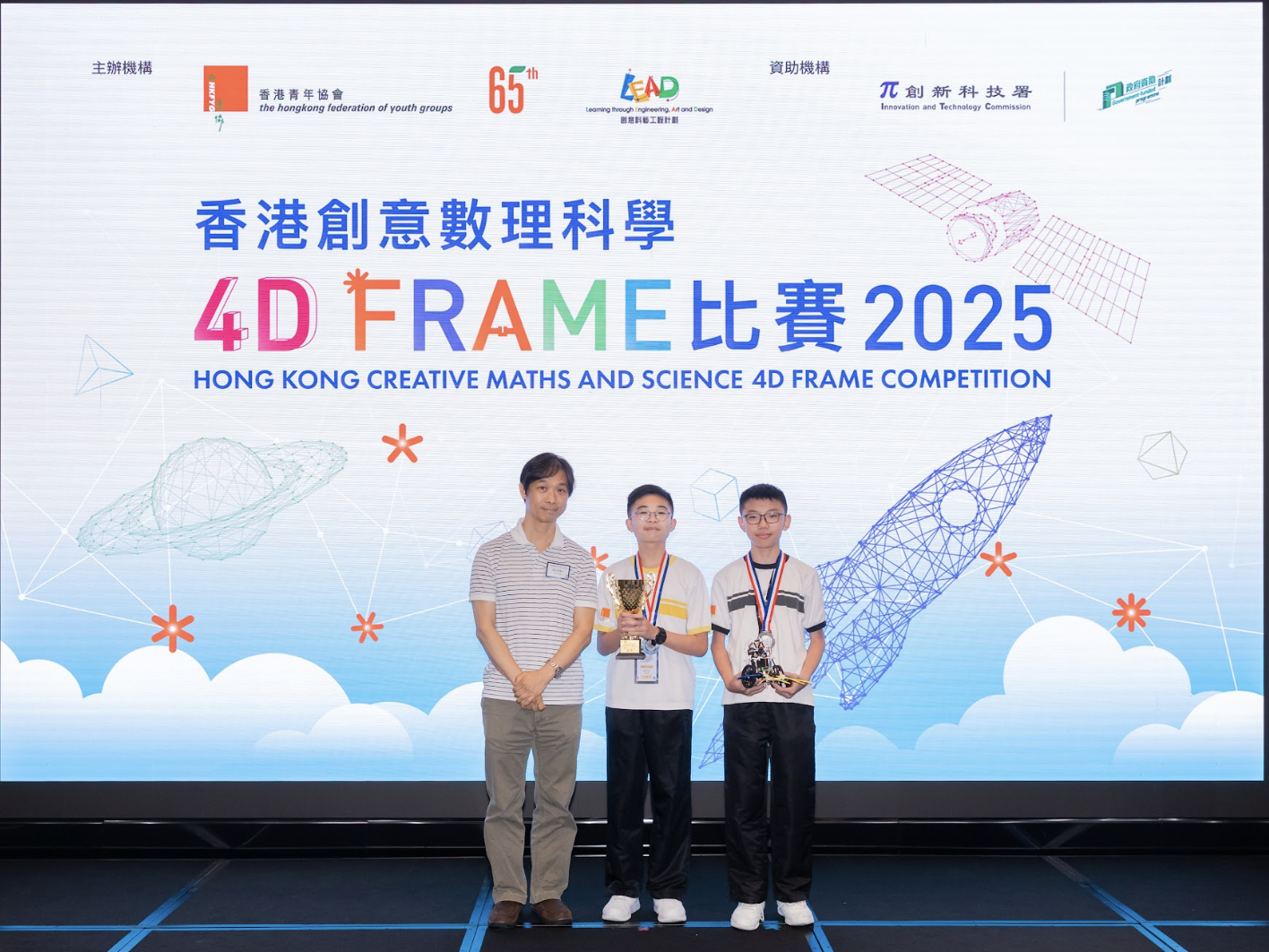 In the Smart 4D Frame Division, TANG Shing Hei (1B) and TSANG Long Ching Caleb (1B) also emerged victorious with a Gold Award, standing out for their creative engineering and teamwork.